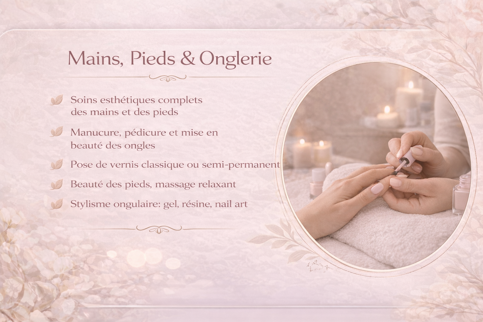 Bienvenue à notre institut de beauté, où chaque soin est conçu pour sublimer votre naturel et vous offrir un moment de détente. Nos experts sont à votre écoute pour vous proposer des soins personnalisés, adaptés à vos besoins et envies.